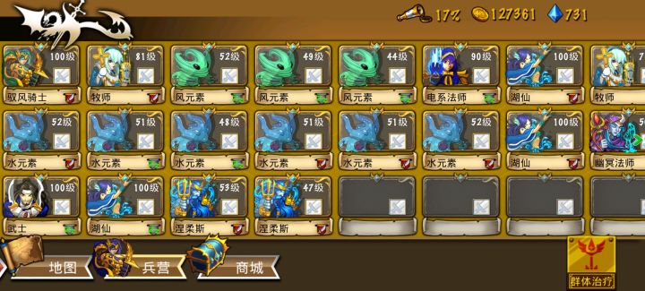 前两天花了300砖石抓了两只财富海神,发现不好用(得转职才行)。这两天又练了法师,抓了一整队的财富法师,发现刷砖石速度还可以。