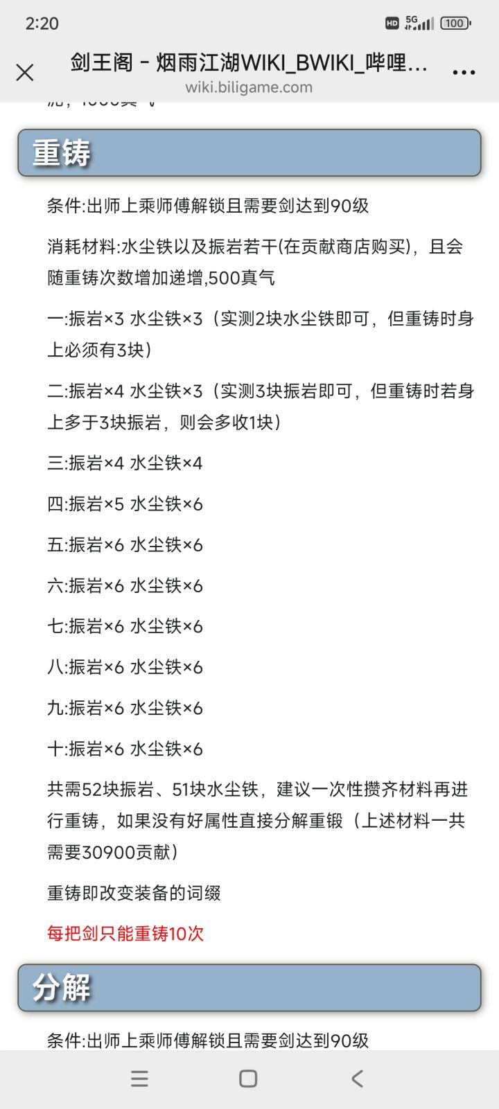萌新求助,剑王阁红武升百级以后可以重铸吗