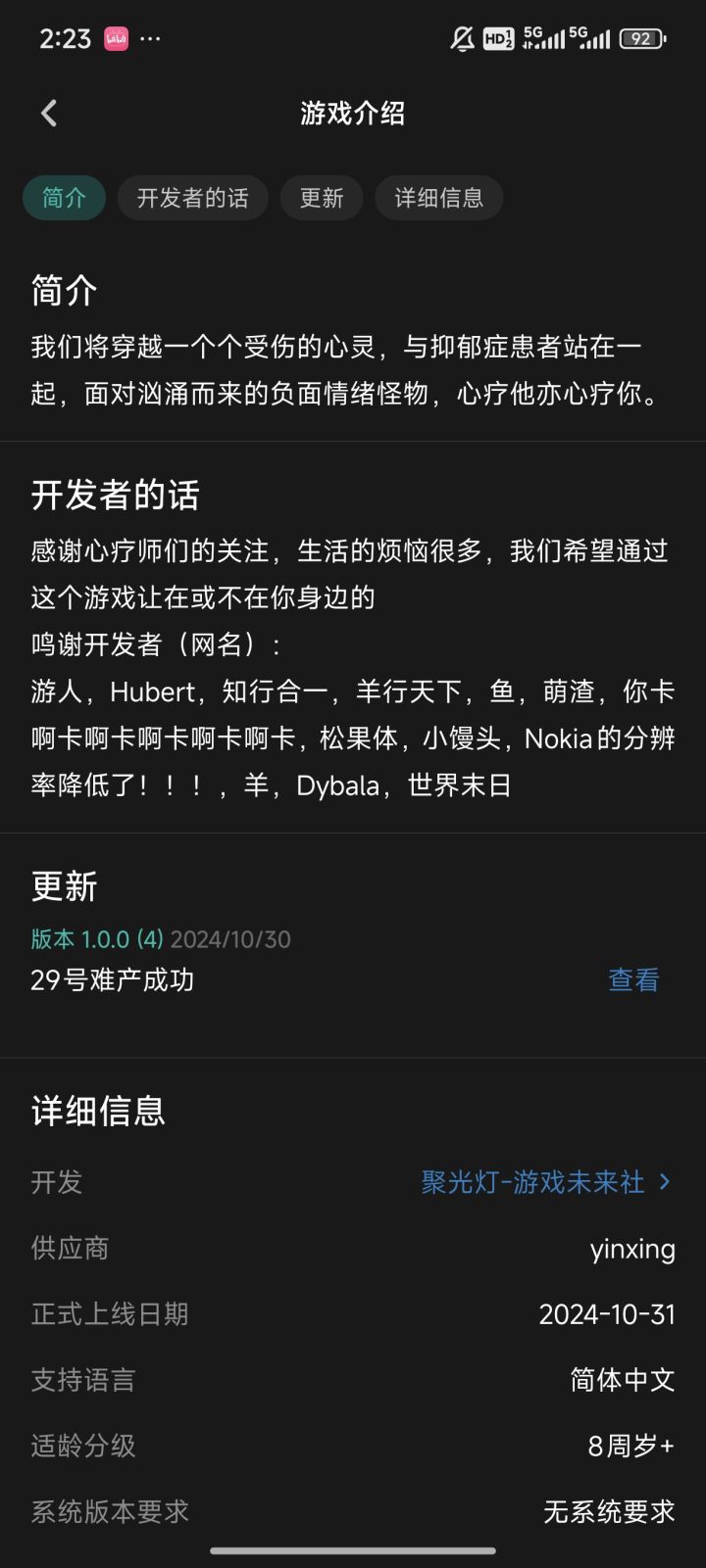 先说优点1.制作者制作这个游戏的初衷我相信是好的,它希望大家可以去关心了解抑郁症患者