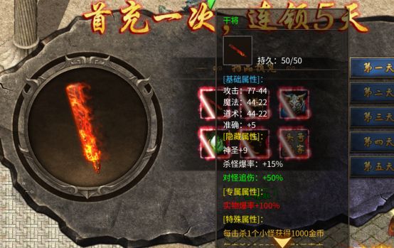 首冲活动6元就能连续领取5天的奖励,首冲武器最高可以打50元的充值,打野怪获得真充奖励,前期一个很好的过渡,性价比拉满了!