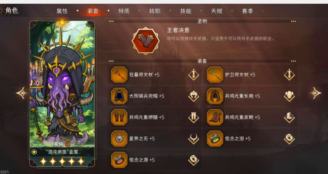 记得将特质【怒火】在医师处惩戒为【势大力沉】。尽量将劈砍伤害堆高一些。