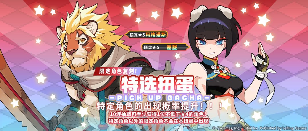 4月17日12:00起,即将举办「复刻角色特选扭蛋」!本次精选扭蛋中,限定★5角色「玛格诺斯」、「谢胧」的出现概率提升!