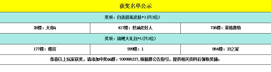 -------------------------------------------------------------(中奖名单)--------------------------------------------------------