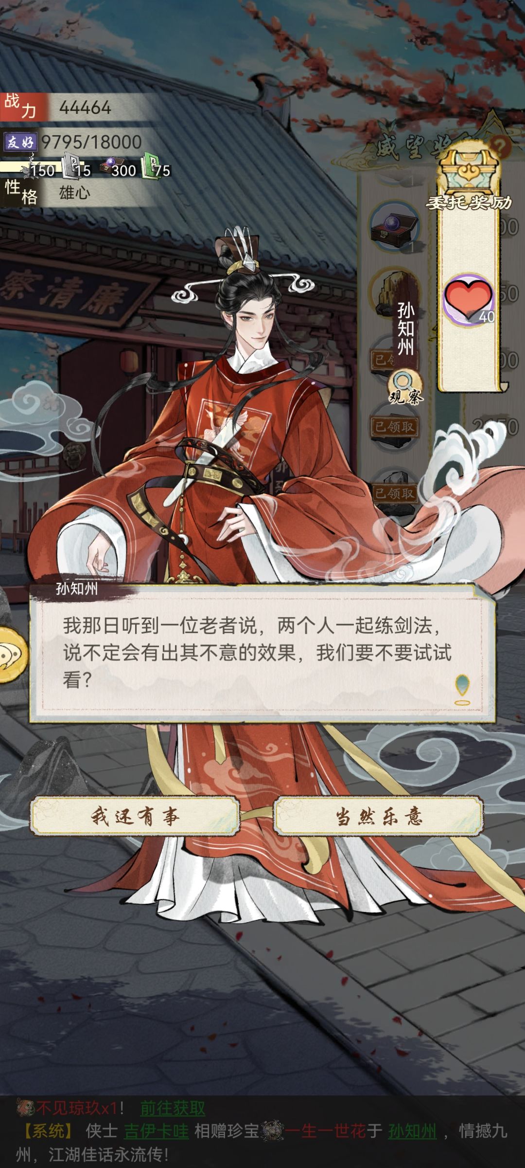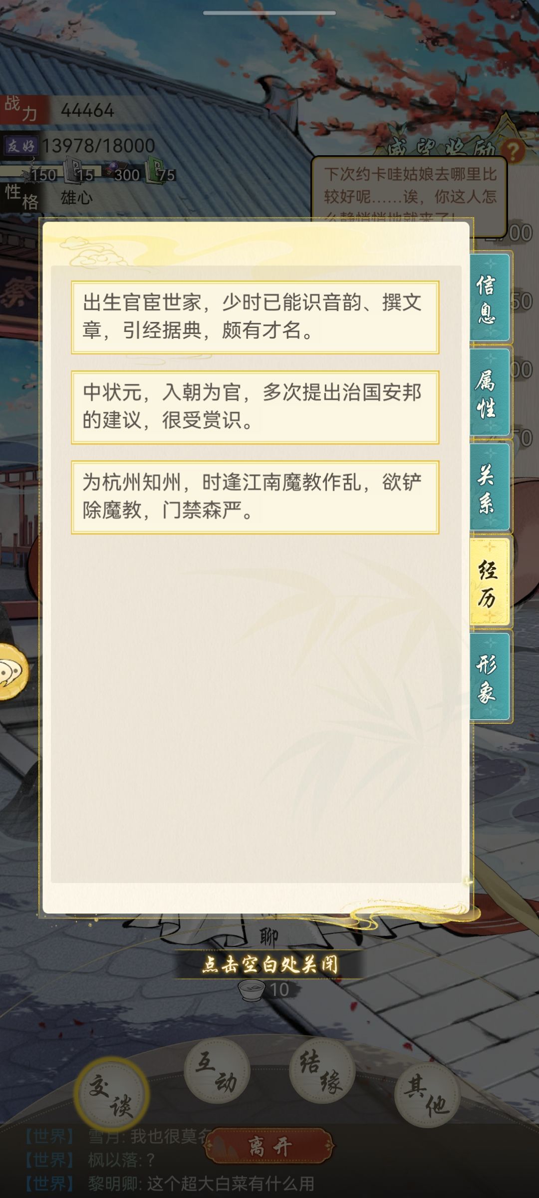 ①敬业。无论何时都在杭州官府,一聊天就说自己急着铲除江南魔教,我问他我打败了那么多魔教人有什么奖励,他说没有奖励。