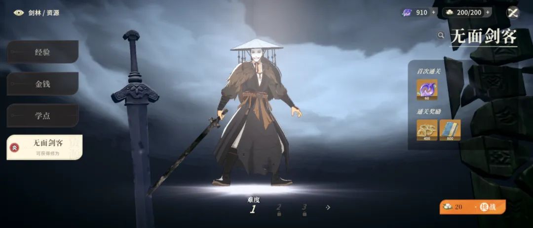 剑林修为BOSS:无面剑客