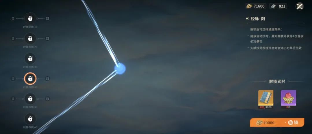 莫知酉40级经脉解锁的强力被动效果,正常养成即可获得