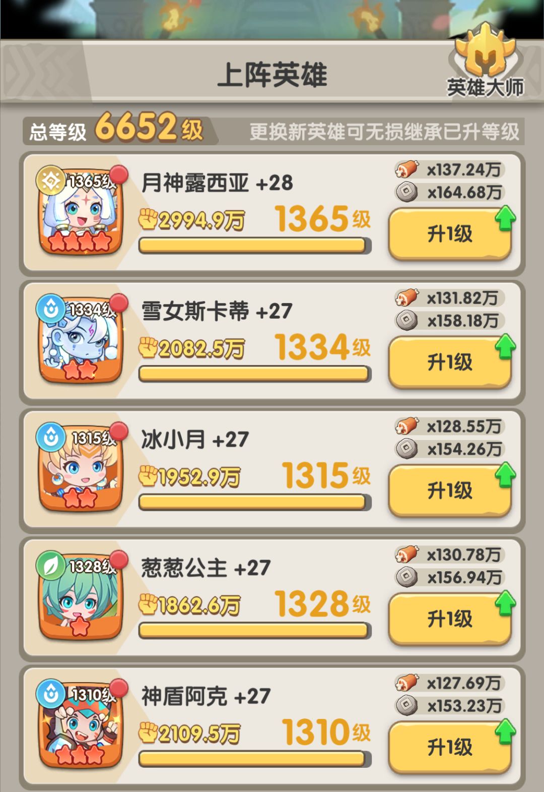 *Tips:如果需要补充伤害,可以考虑将葱葱公主升级成雷神左尔,享受月神的光环的同时,不需要点出必杀技能就可以提供巨量伤害~