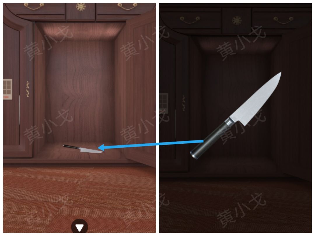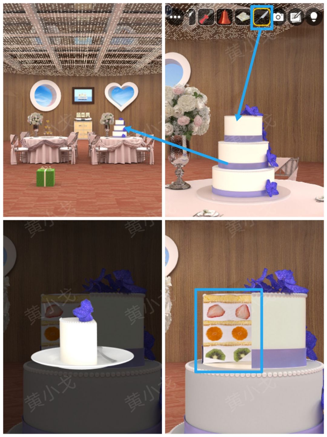 33.点击右侧桌子,用【刀】切开蛋糕,获得【一块蛋糕】和线索