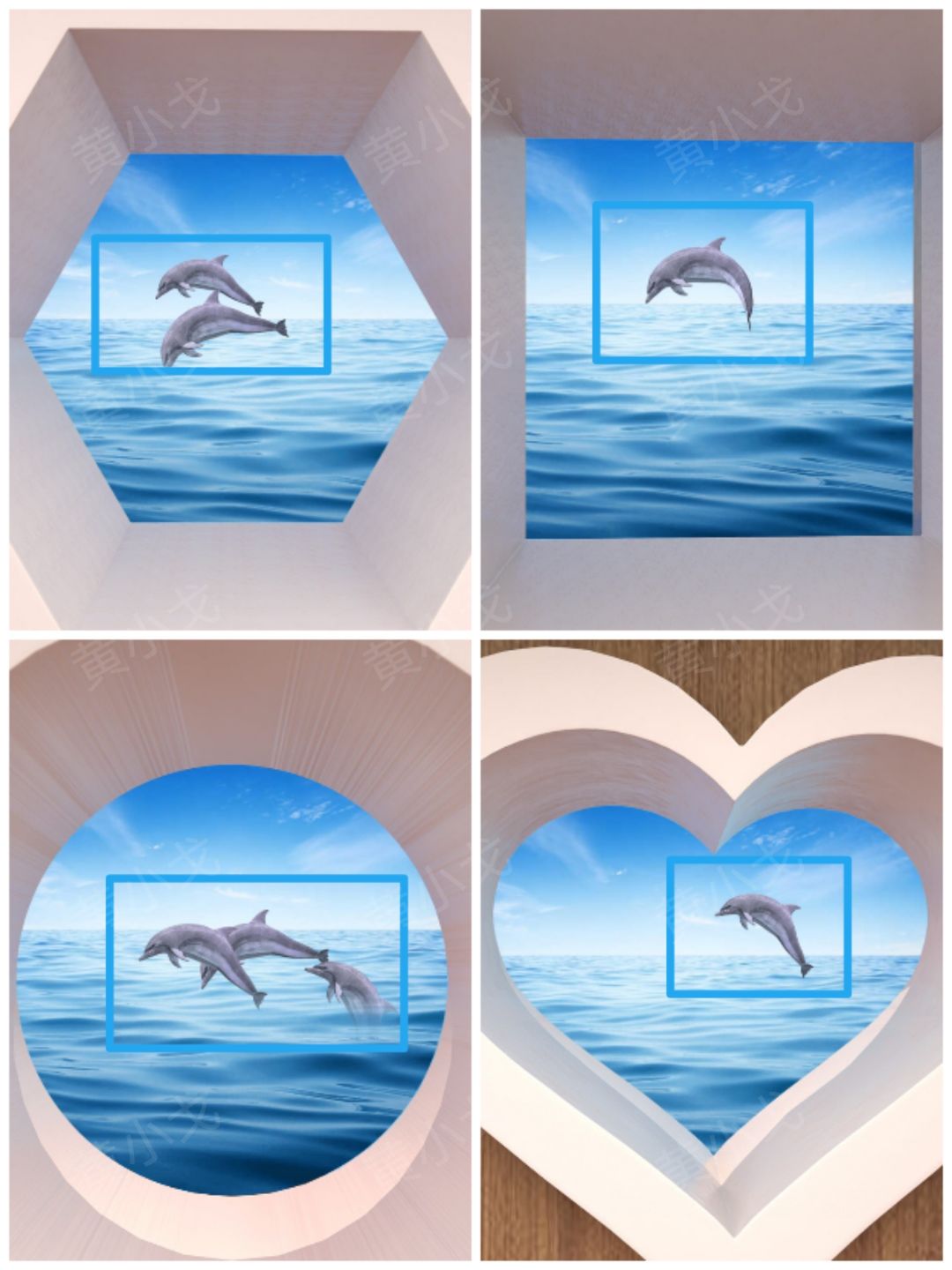🔶注意窗户的形状和窗外海豚的数量:圆形-三只、心形-一只