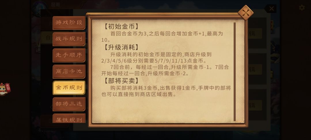 7回合前每回合商店升级-1金币,8回合开始每回合10金币。