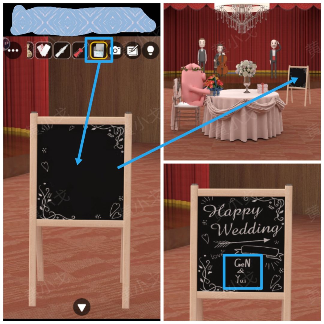 25.点击柜子右上角柜门上的密码锁,根据上面的颜色提示,结合[婚礼现场]场景地上的花瓣线索,输入密码:534