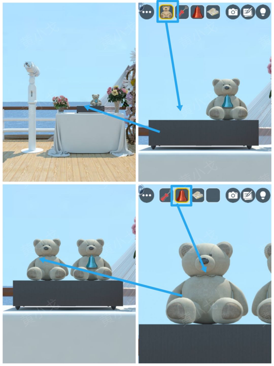 19.点击桌子,放上【玩偶熊】,给它挂上【铃铛】