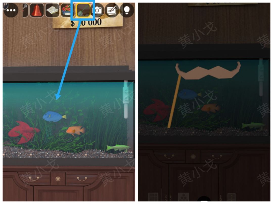 12.点击鱼缸,用【捞网】捞出【胡子】