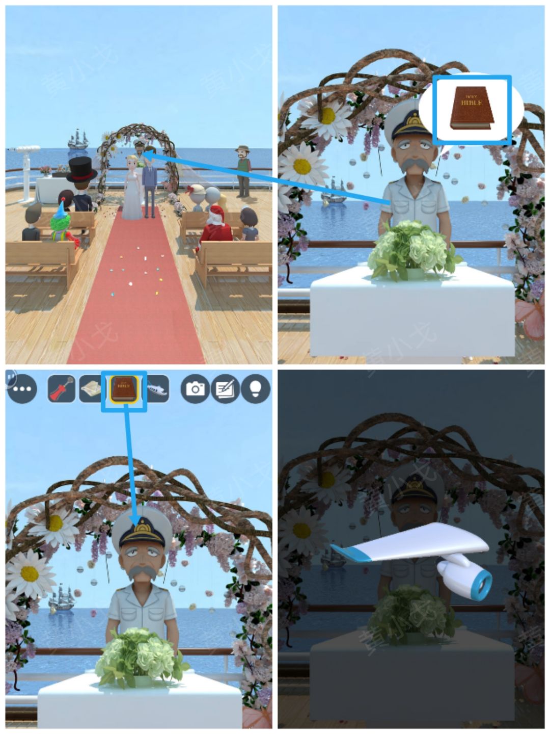 29.点击司仪,拿【圣经】给他,获得【玩具飞机部件】