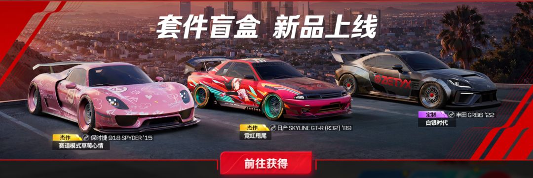 套件盲盒现已上新,日产 Skyline GT-R (R32) '89 杰作级套件“霓虹甩尾”、保时捷 918 Spyder '15 杰作级套件“赛道模式 草莓心情”、丰田 GR86 '22 定制级套件“白银时代”,以上3款套件在活动期间抽取概率提升~