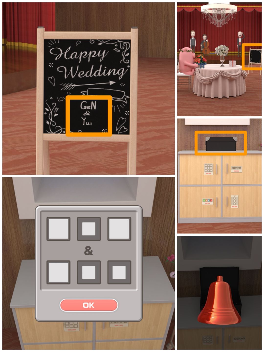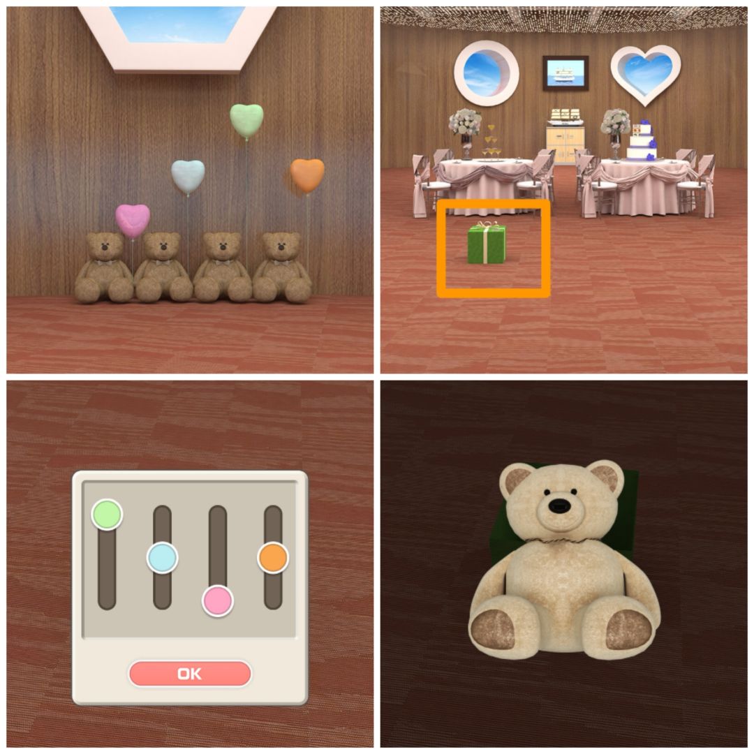 13. 查看四个气球的高度位置,可以打开地上的绿盒子,得到玩具熊。