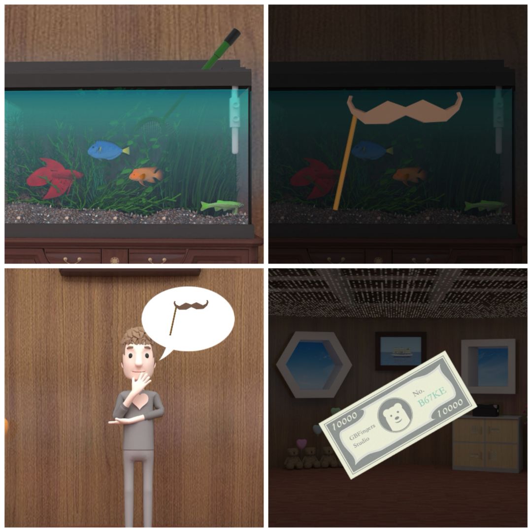 7. 对鱼缸使用渔网,得到装饰胡子,把胡子给在拍照的人,得到赏金。