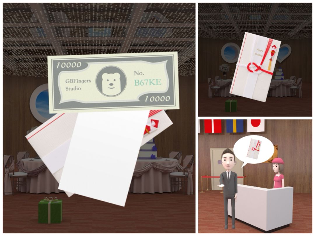 15. 把赏金塞入信封,得到完整的礼金,把礼金给门口的男人。