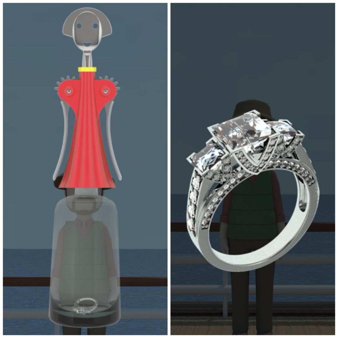 19. 对玻璃瓶使用开瓶器,得到戒指。