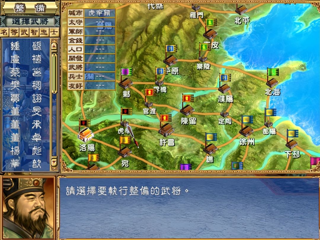 如果你选择董卓阵营开玩,只要随便混上几个回合,就会自动触发曹操跳出来做刺头,煽动袁绍等关东诸侯们一起喊口号讨董的剧情。不过受到当年技术因素的限制,《三国群英传》3代的讨董之战,实际只是让与董卓领地接壤的曹操和袁绍合力派出部队来打虎牢关。至于孙坚、公孙瓒、袁术、刘备等人,那就完全是在大后方看戏了。