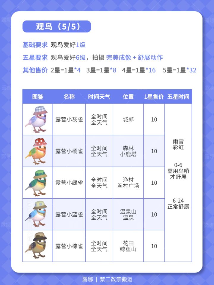心动小镇 春野令限定5只鸟 攻略图鉴 拍五星