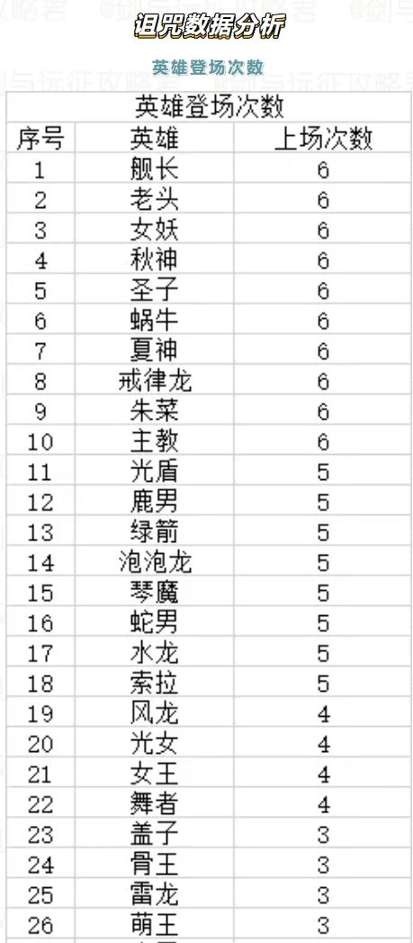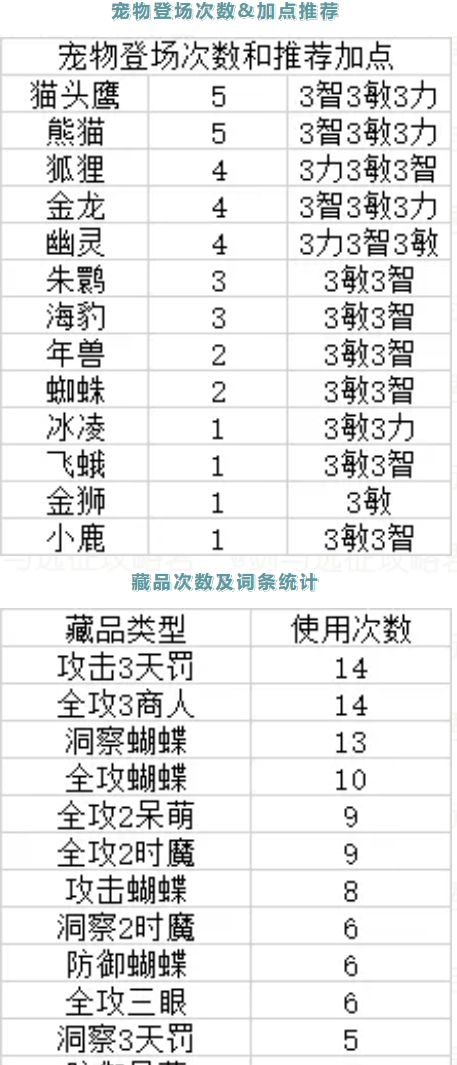 本轮诅咒数据分析包括阵容一览、英雄上场次数、宠物上场次数及推荐加点、各类藏品使用次数。
