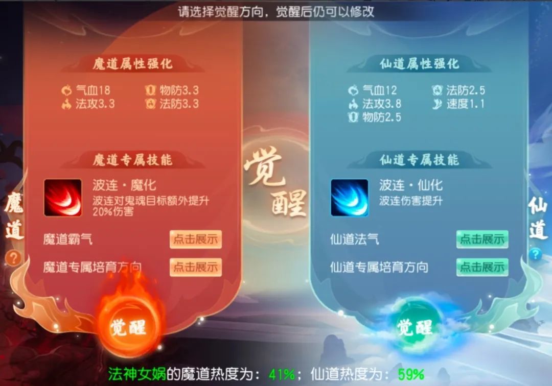 魔道觉醒主要提升宠物对鬼魂目标的克制伤害,但方向较片面,且宠物已有高级驱鬼提升,这20%增伤意义不大。而仙道觉醒则全面强化波连伤害,更优。因此,宠物觉醒方向建议选择仙道。