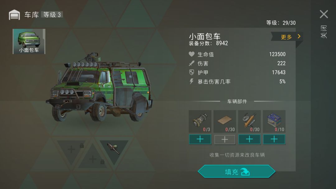 把攒了好几个月的资源,全都梭哈到面包车上,最后只到了29级,估计要下周才能升级到30级了