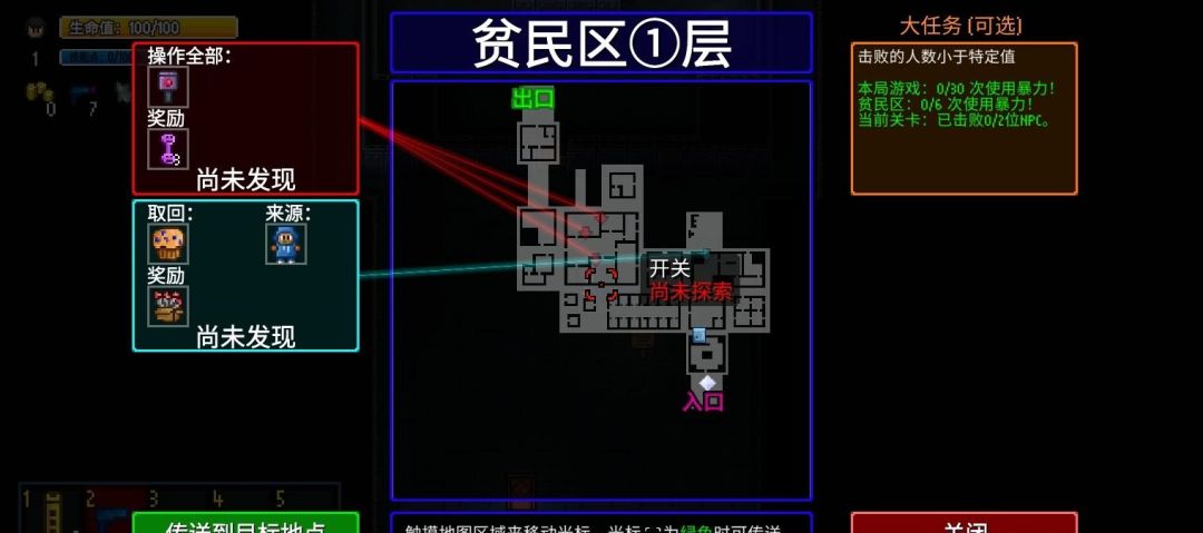 地图:右上角是地图,点击地图即可展开,可以查看任务地点,任务报酬,大任务是否完成,若有个地方你走过,你可以在地图上传送(在建筑物内或者有敌人追逐你的时候无法传送,没探索过的地方也无法传送)