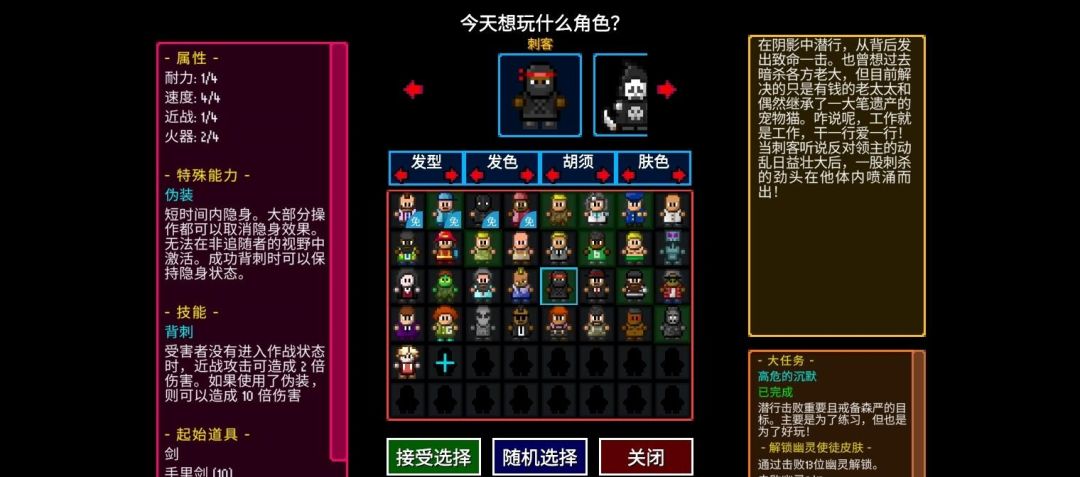技能:背刺(正面)受害者没有进入作战状态攻击造成2倍伤害,使用伪装则造成10倍伤害