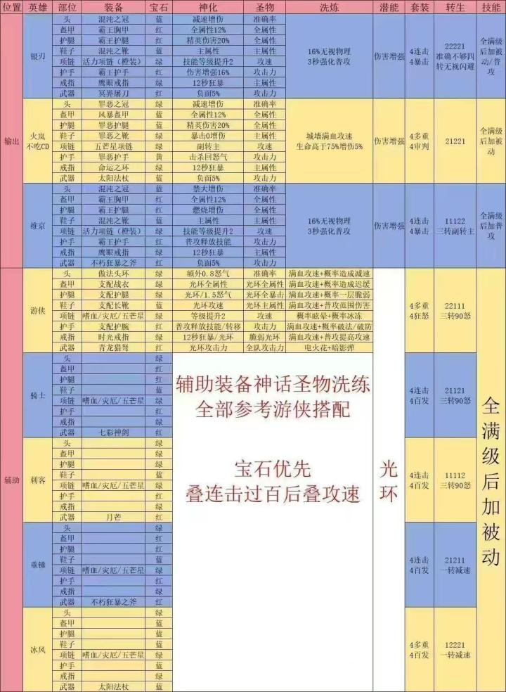 游侠、骑士是铁打的辅助,一个被动加输出一个加命中和攻速