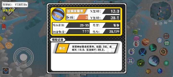 幸运时刻分享! 【神秘售卖机】4月12日下午2点 - 丝绸皮腰带【35-55级 】【稀有度:稀有】 【3区】 【X:13.0, Y:38.2】