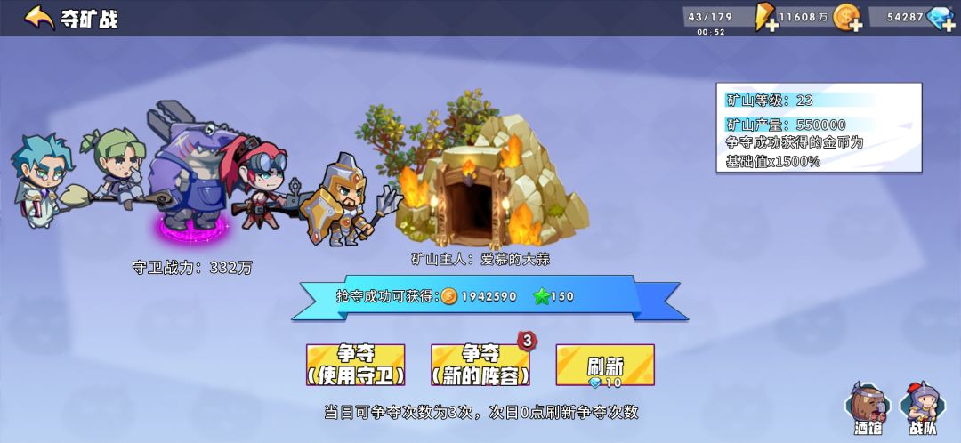 熟练度获取:每天魔王消除,需要魔王阵容与战队一致详见图二图三。。夺矿战,使用新的阵容———