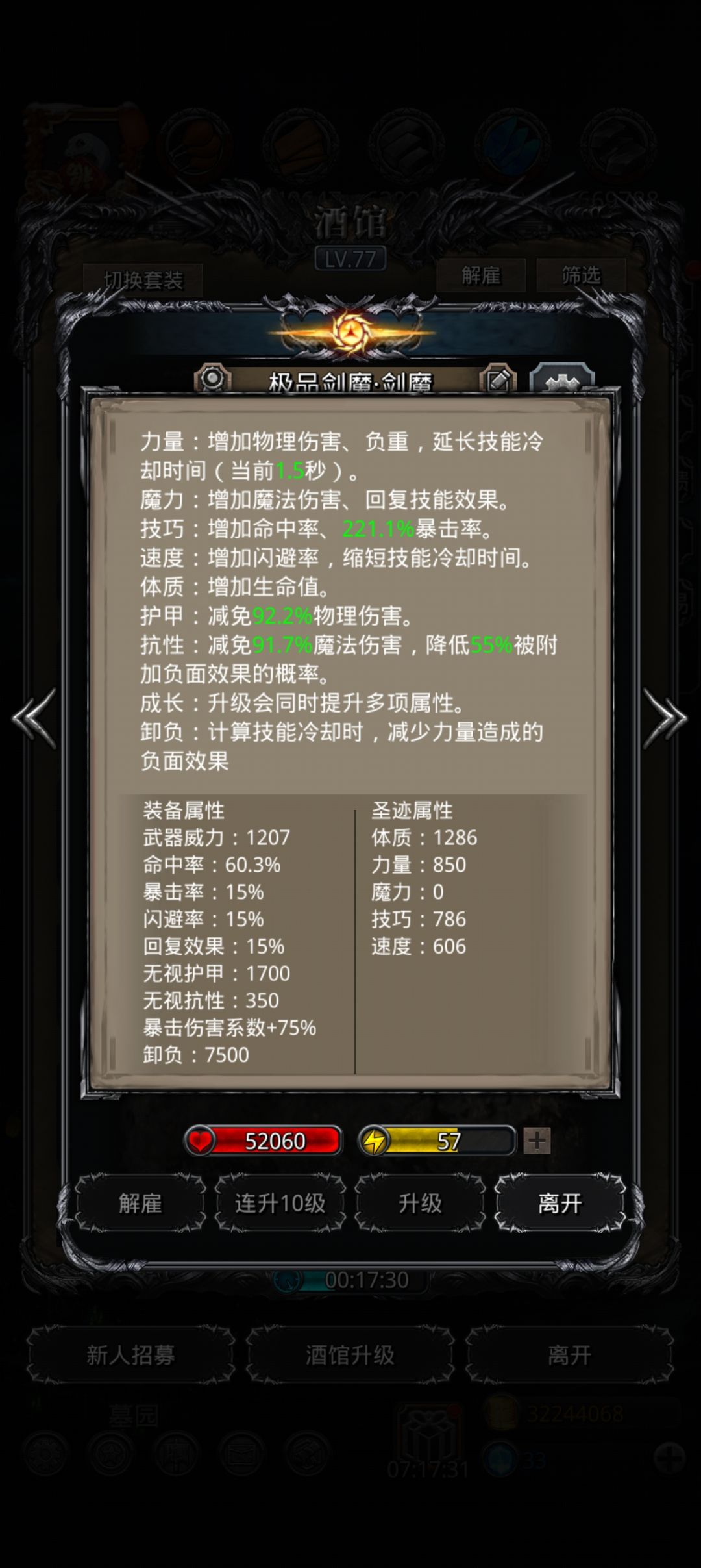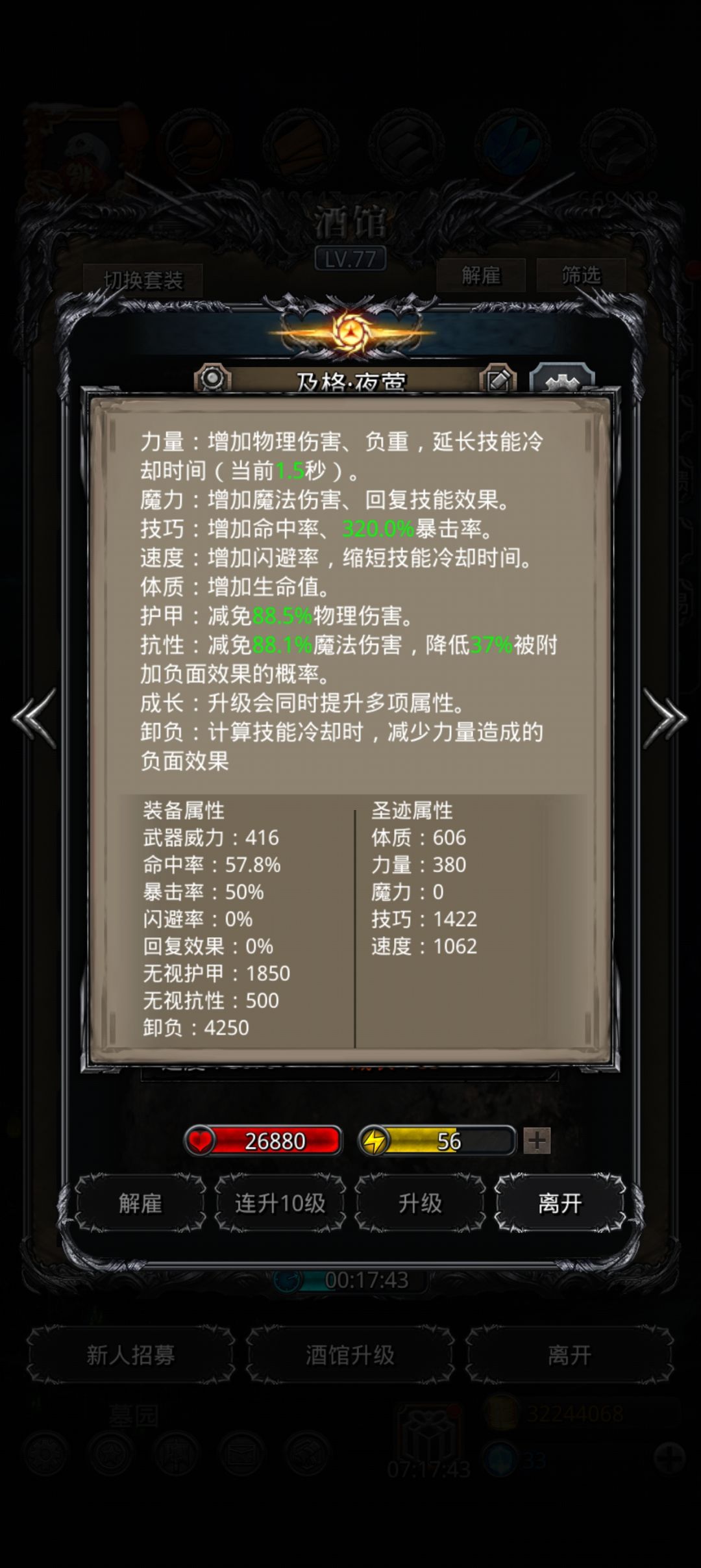 84次成功了3次 第三次才刷过去无毁灭巨镰附带人物属性面板属性战利品属性