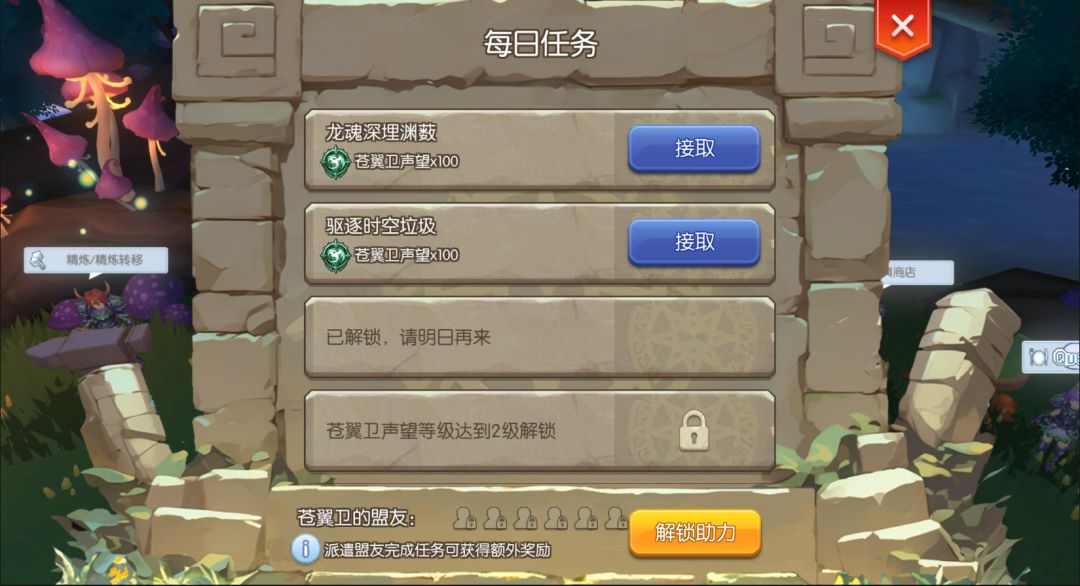 苍翼卫每日发布的任务将是苍翼卫声望的主要来源。除主动接取外,冒险者还可派遣苍翼卫盟友来快速完成每日任务,由盟友完成的任务还将额外获取更多的声望,冒险者可以优先派遣盟友完成任务哦~