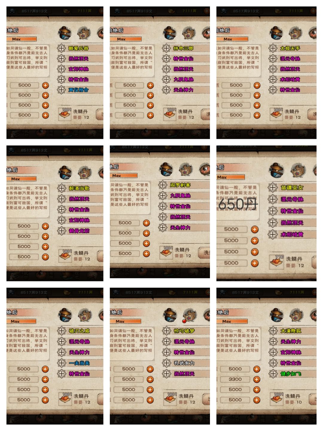3.输出随:金顶混神力/飘or金顶阴神力/飘,蓝脉一夫和道心也不错。