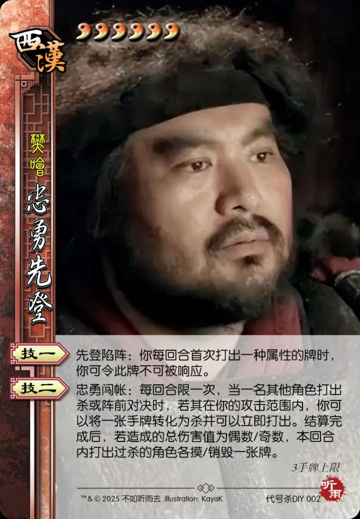 西汉 樊哙 6勾玉 3手牌上限 忠勇先登
