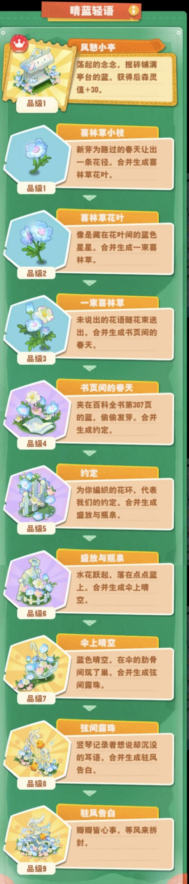 1、2:新花季:晴蓝轻语。这个花季的花花还挺好看,跟爱丽丝梦游仙境那个蓝色的玫瑰有点类似,一样的好看!忍不住全都要了,咋办。特别是5级的围栏超适合当围墙造景啊啊啊