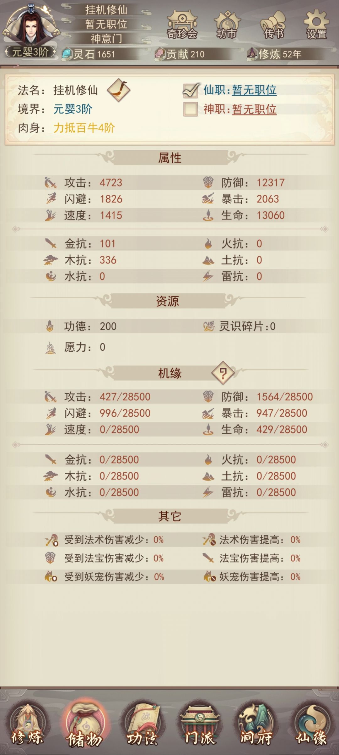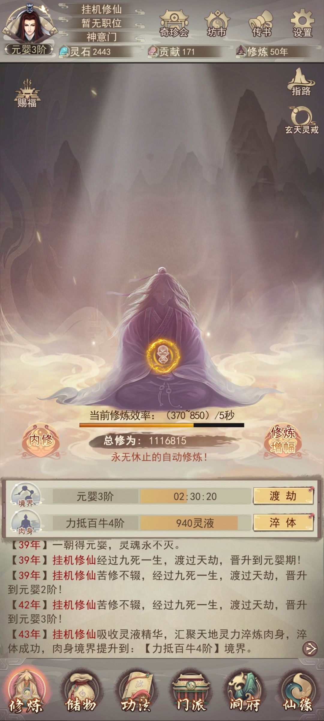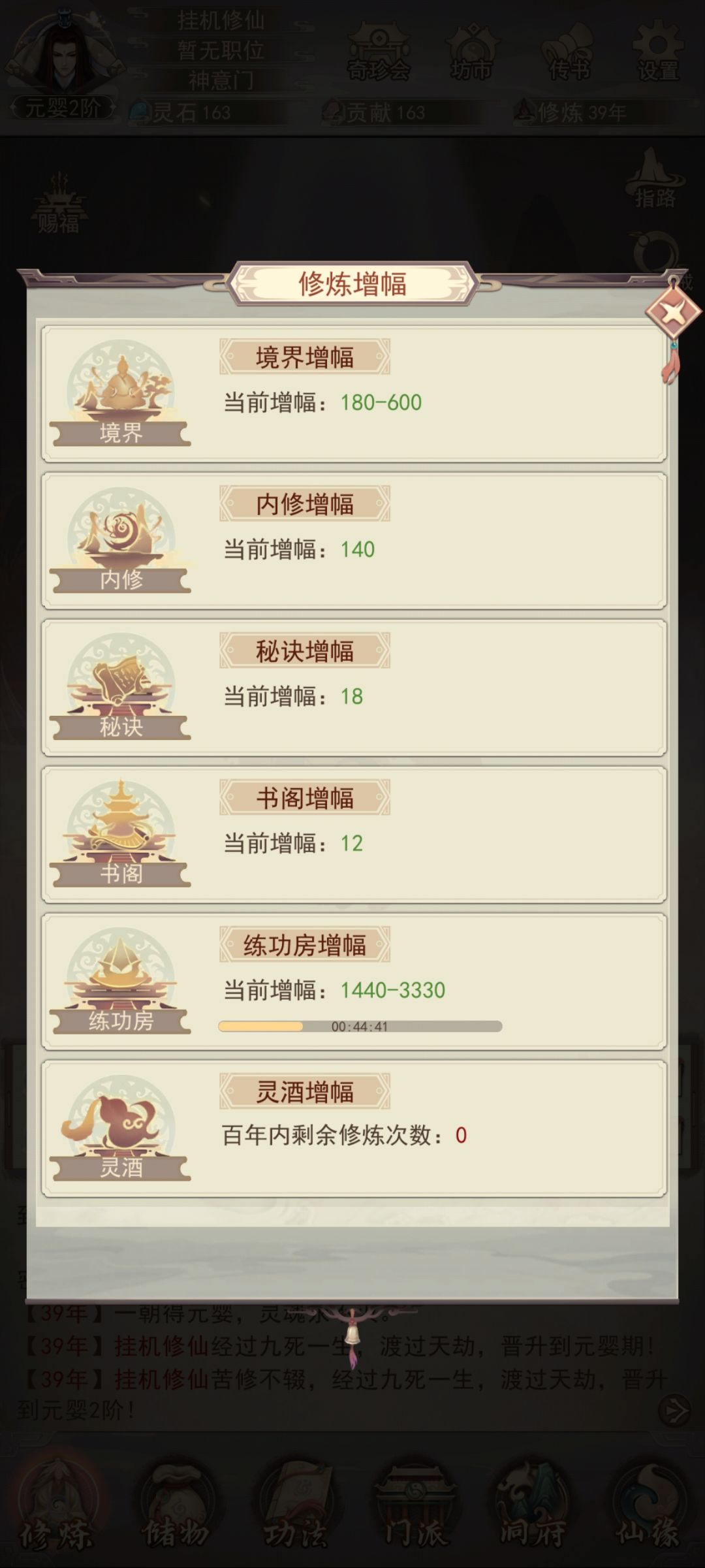 本攻略第一天的最终境界在元婴三或元婴四(区别在于仙书坊刷出了几本书)接下来对境界影响因素进行排序并做说明。