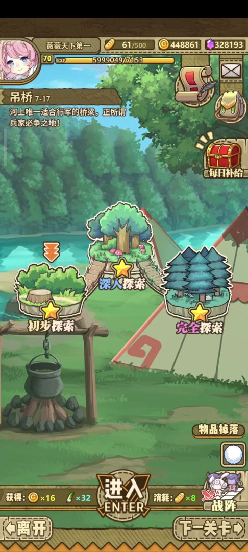 纳尔本7-17-3,这个吊桥上的弩车还是给力的,我们的小红帽倒下了,但是问题不大,依靠等级跟高输出还是秒了。