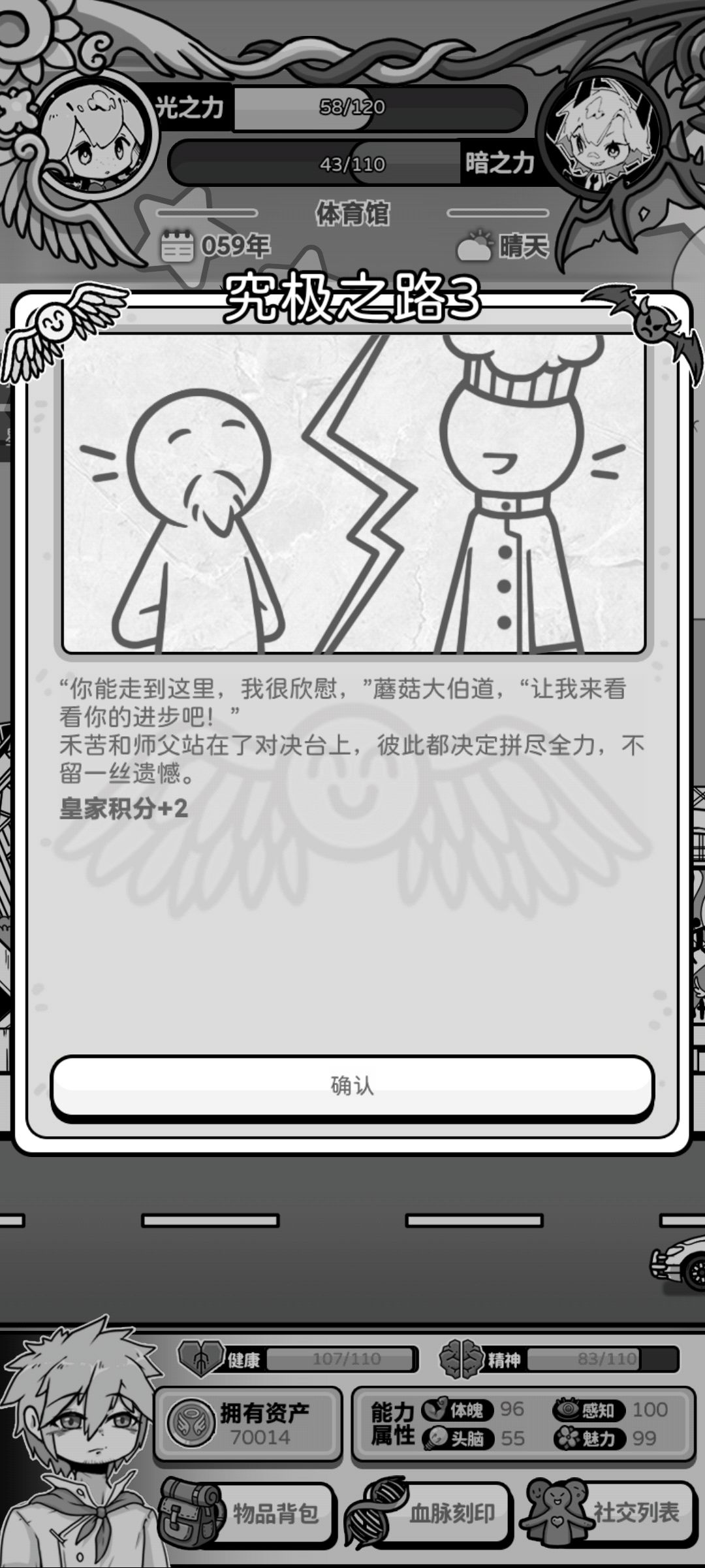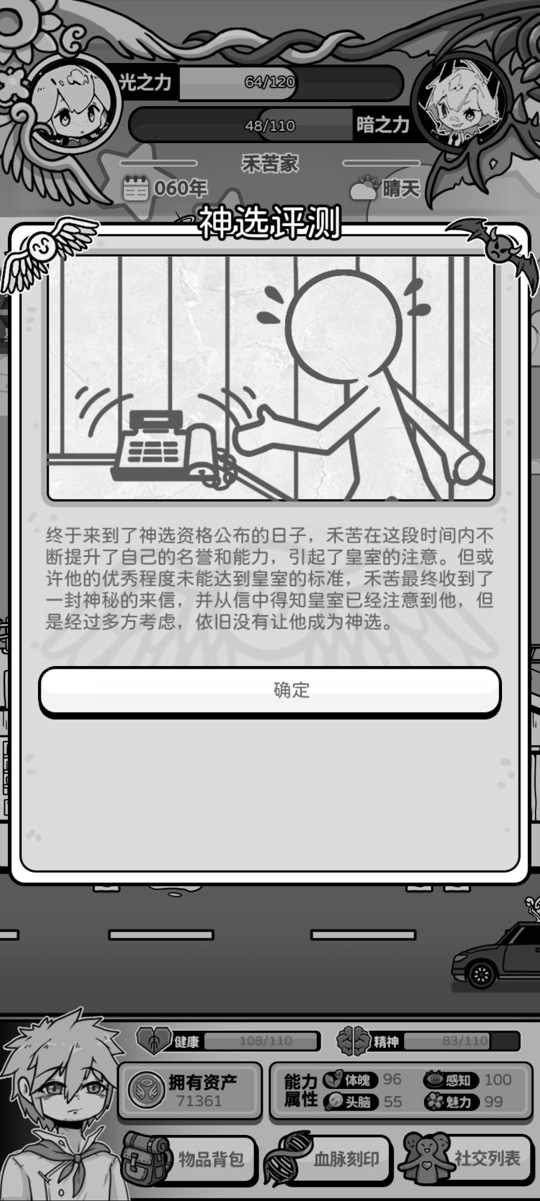 32准备垦荒:三个选项加光之力(+20)/健康(+15)/精神(+15)