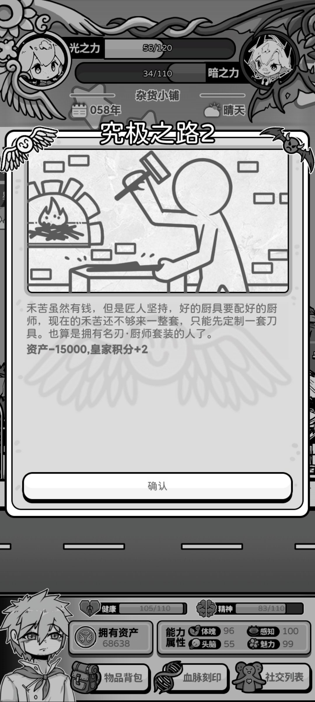 小人物大智慧:暗之力+8,头脑+8,精神-10