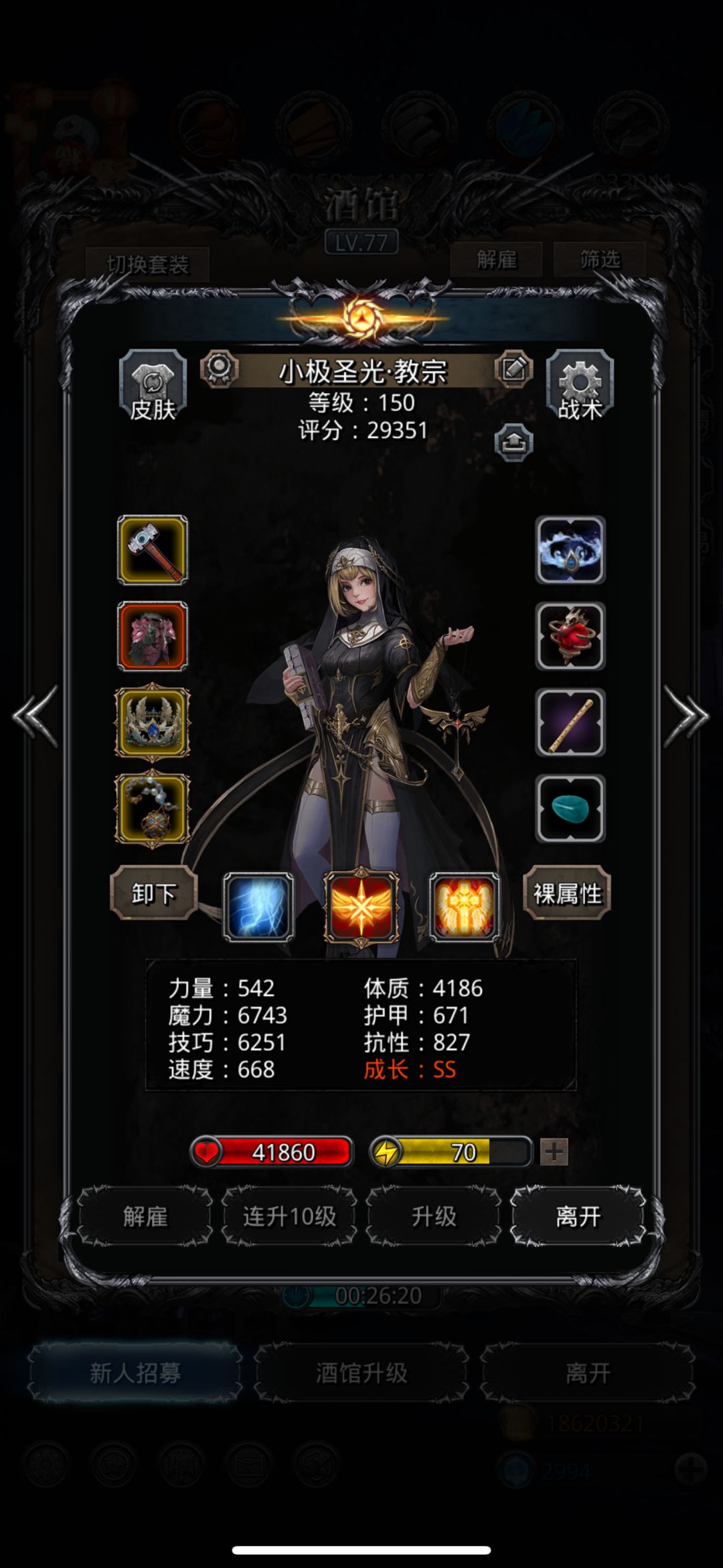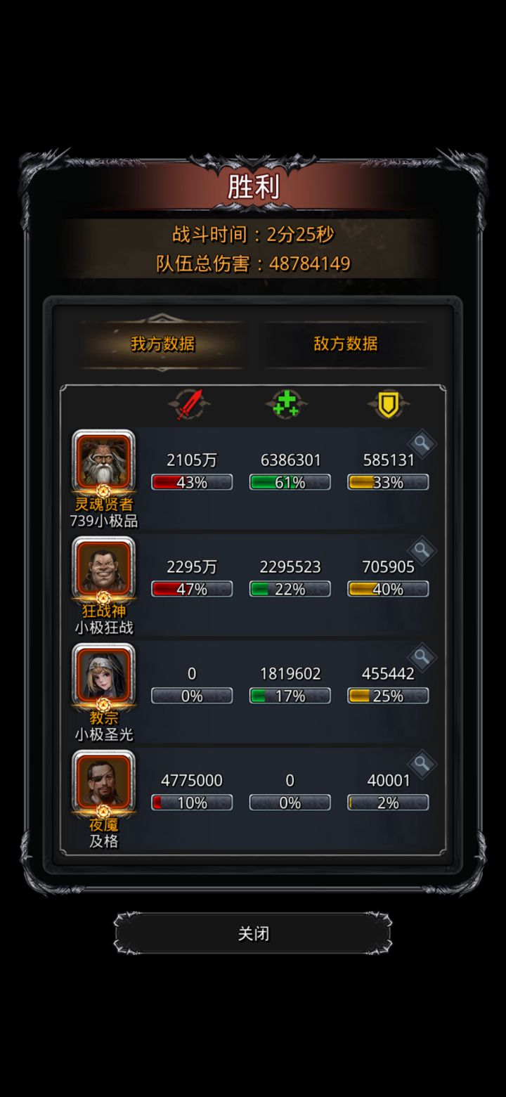 最后魂贤93.2命中,蛮子90.7命中,教宗环11.8回复,夜演开局就死,战利品懒得带了(魔石15异常,环9.4但是我这把没挂上,有概率可以双挂,刷了十几次出了2-3次)输出的上限下限差距极其大,这把我蛮子一刀不空,魂贤空了1-2刀,开局未挂上双生特效但是局内触发六次巨人特效,提前五秒打完,boss前期频繁点蛮子会扛不住,后期好像很少暴毙不知道为什么,只要撑过前期就看两位发挥了 #地下城堡2黑暗觉醒 图39月之侍