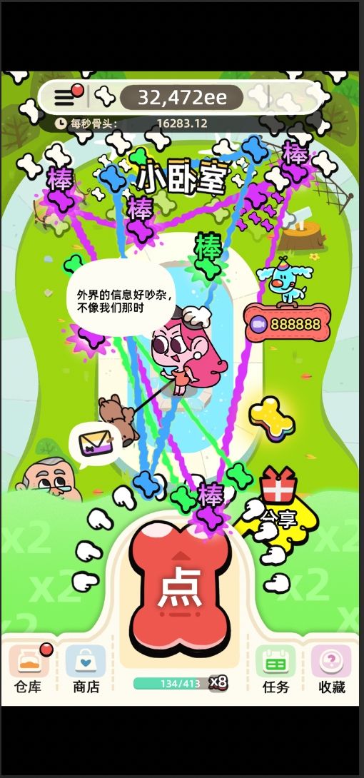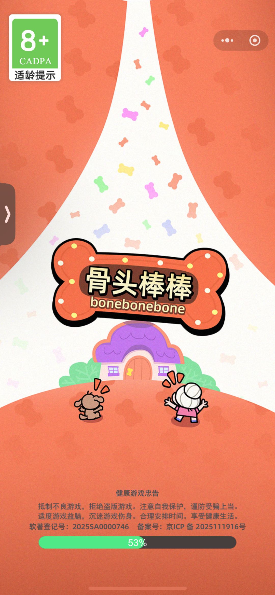 前阵子失业美术自己拉来程序员朋友憋出来的小游戏《骨头棒棒》上线啦!