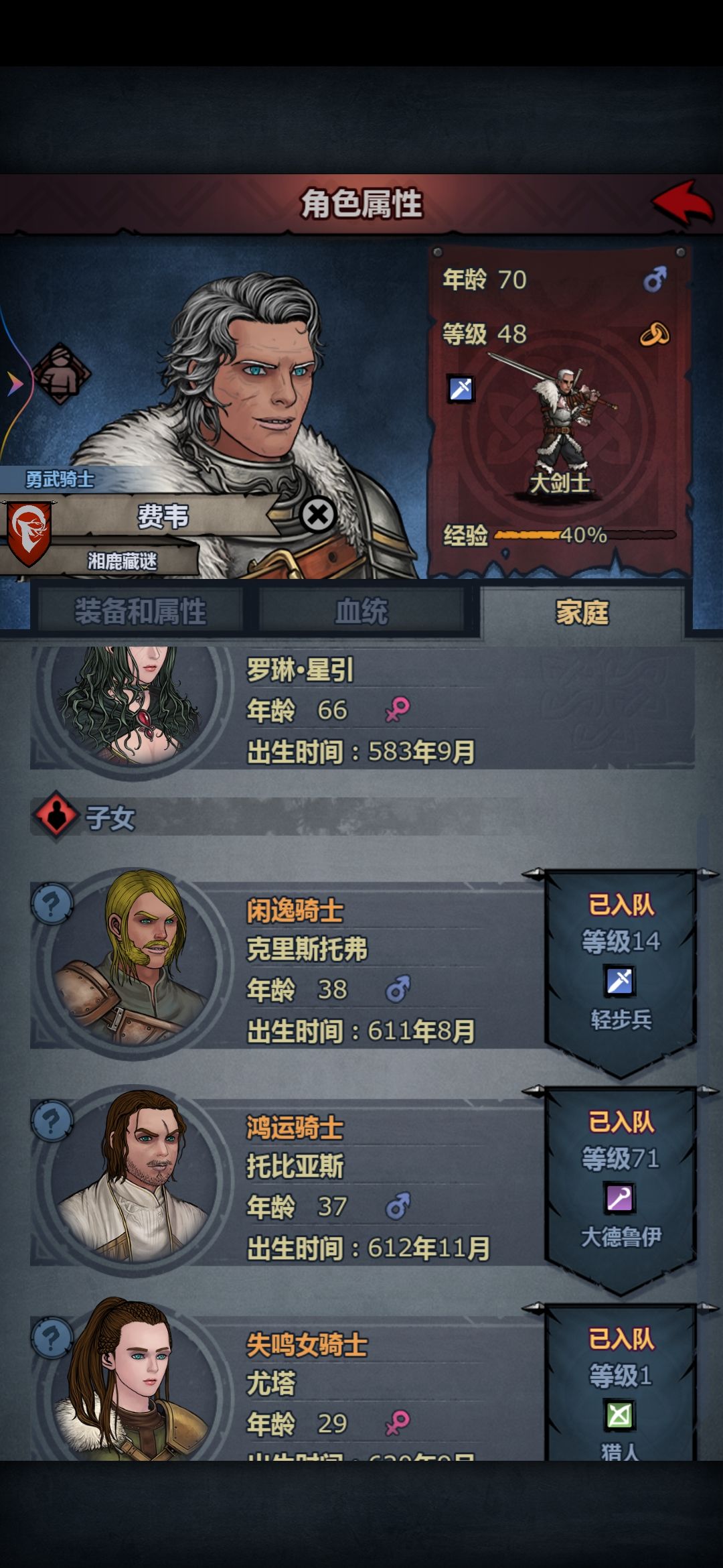 结婚方面,大儿子神奇的找到了宏朝血脉,留下了25血的孩子,我会尽可能保留这份来之不易的血脉流传。二儿子不负众望,成功结交了男爵,从此家族有了第一位男爵。