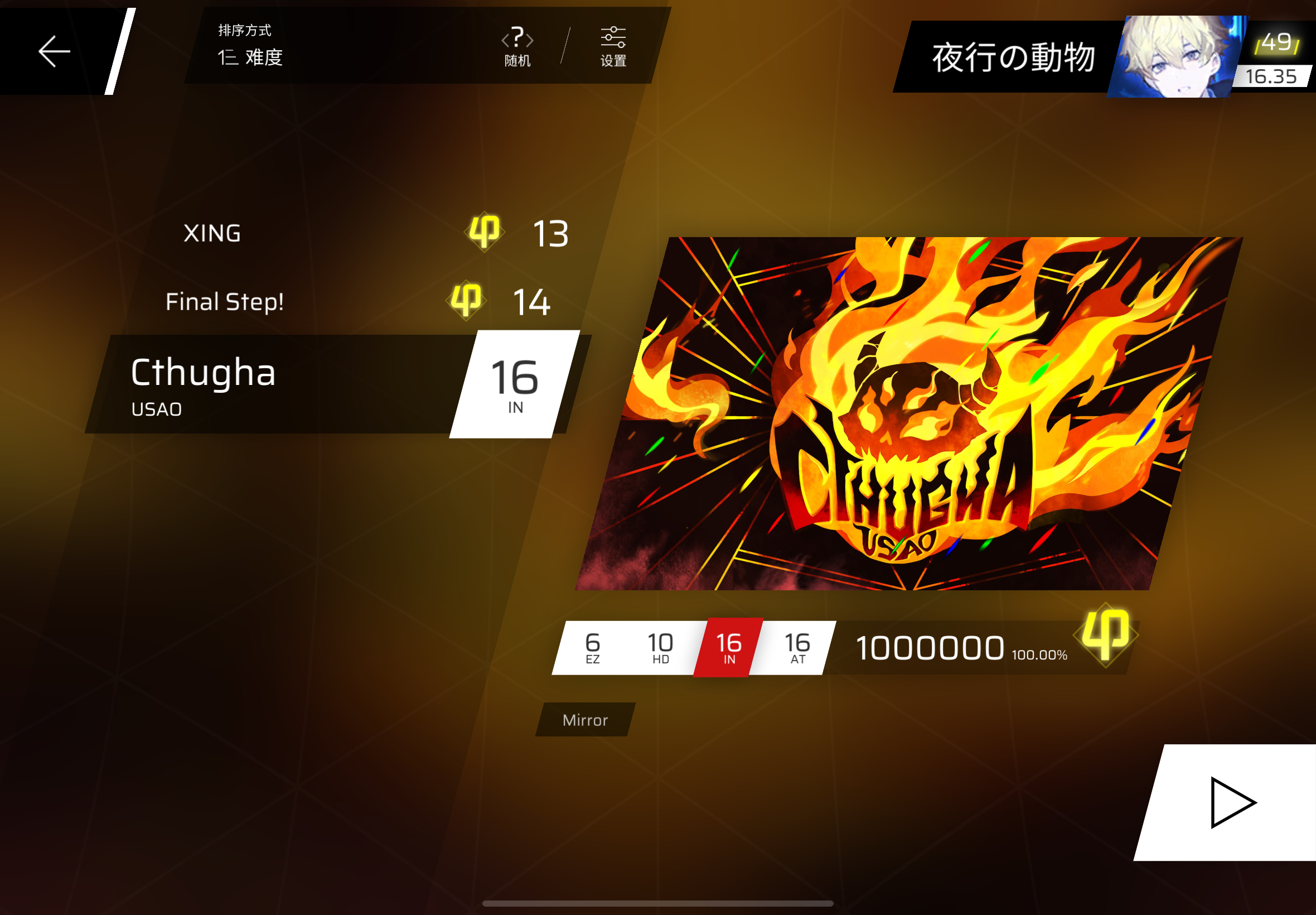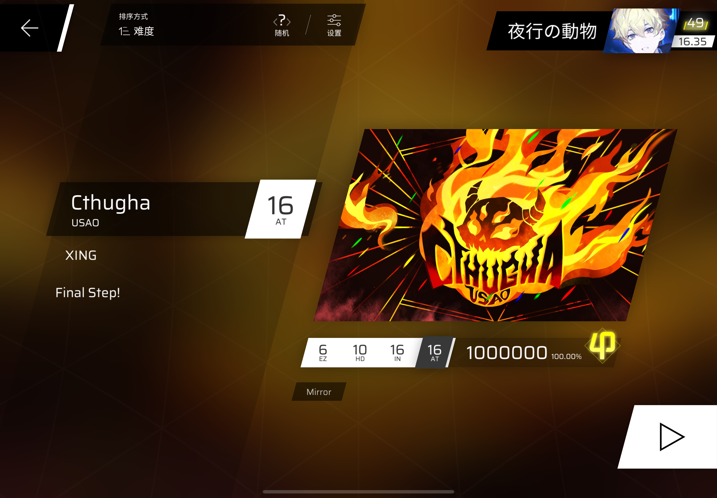 顺序:Cthugha AT → Cthugha IN → Final Step! → XING