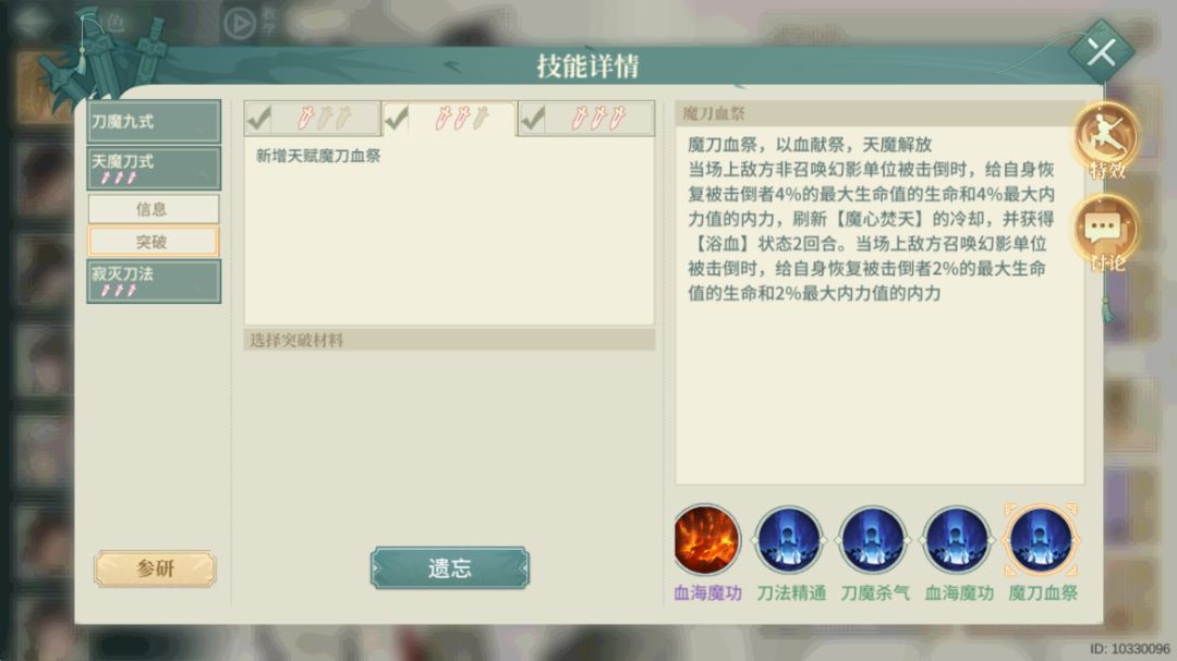 相信游戏理解深厚的玩家已经发现了,刀魔的武学被动没有写需要使用天魔刀式,这就表明魔刀这个技能可以辅学。