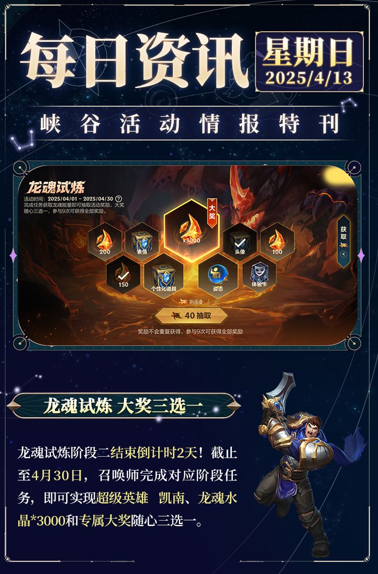 奖励:超级英雄 凯南,龙魂水晶*3000,专属大奖