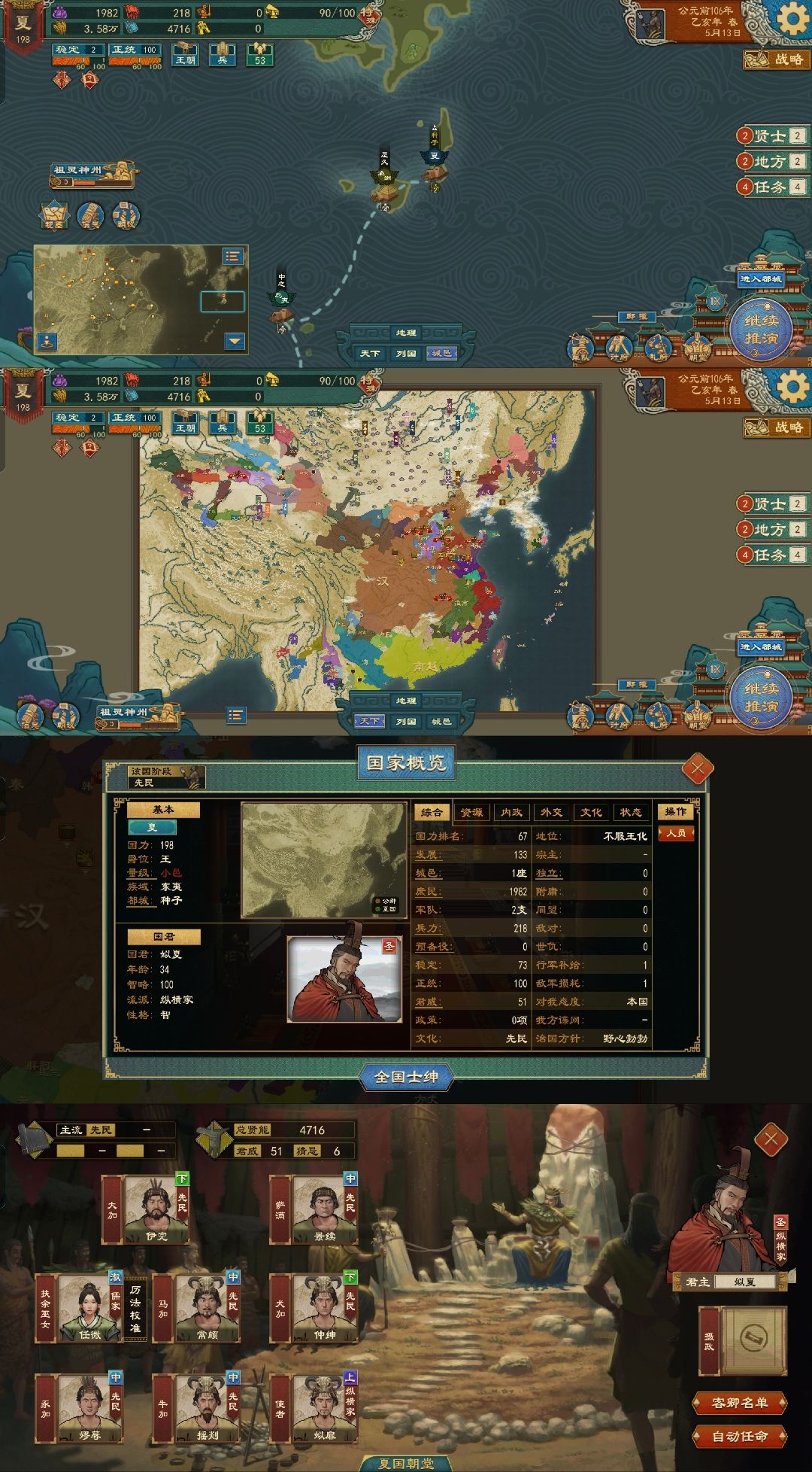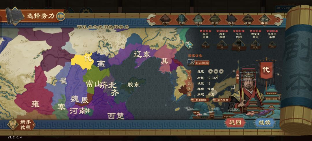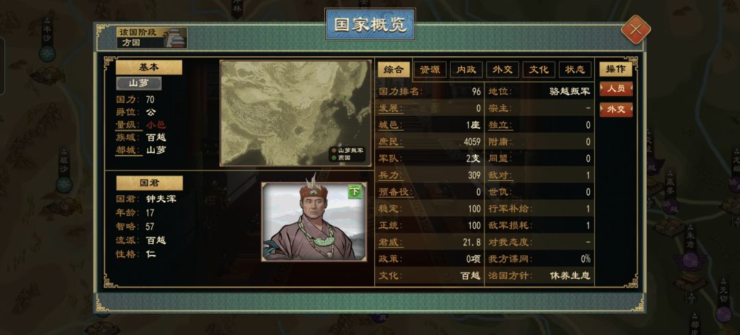 举一反三,此方法同样可以游玩其他文明阶段国家,也可更改玩家自己的族域(仅限华夏族域)(华夏族域:中夏、西戎、北狄、南蛮、东夷)并且可以游玩异族官职(比如扶余、匈奴、辰韩、西域官职等)
