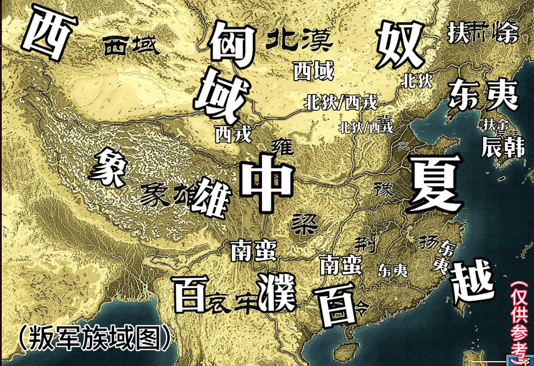 中夏国家(南岭哀牢)→百越叛军(叛军立国后)(江东/半岛北部)→东夷叛军(立国后)(燕南/代北)→西戎叛军/北狄叛军